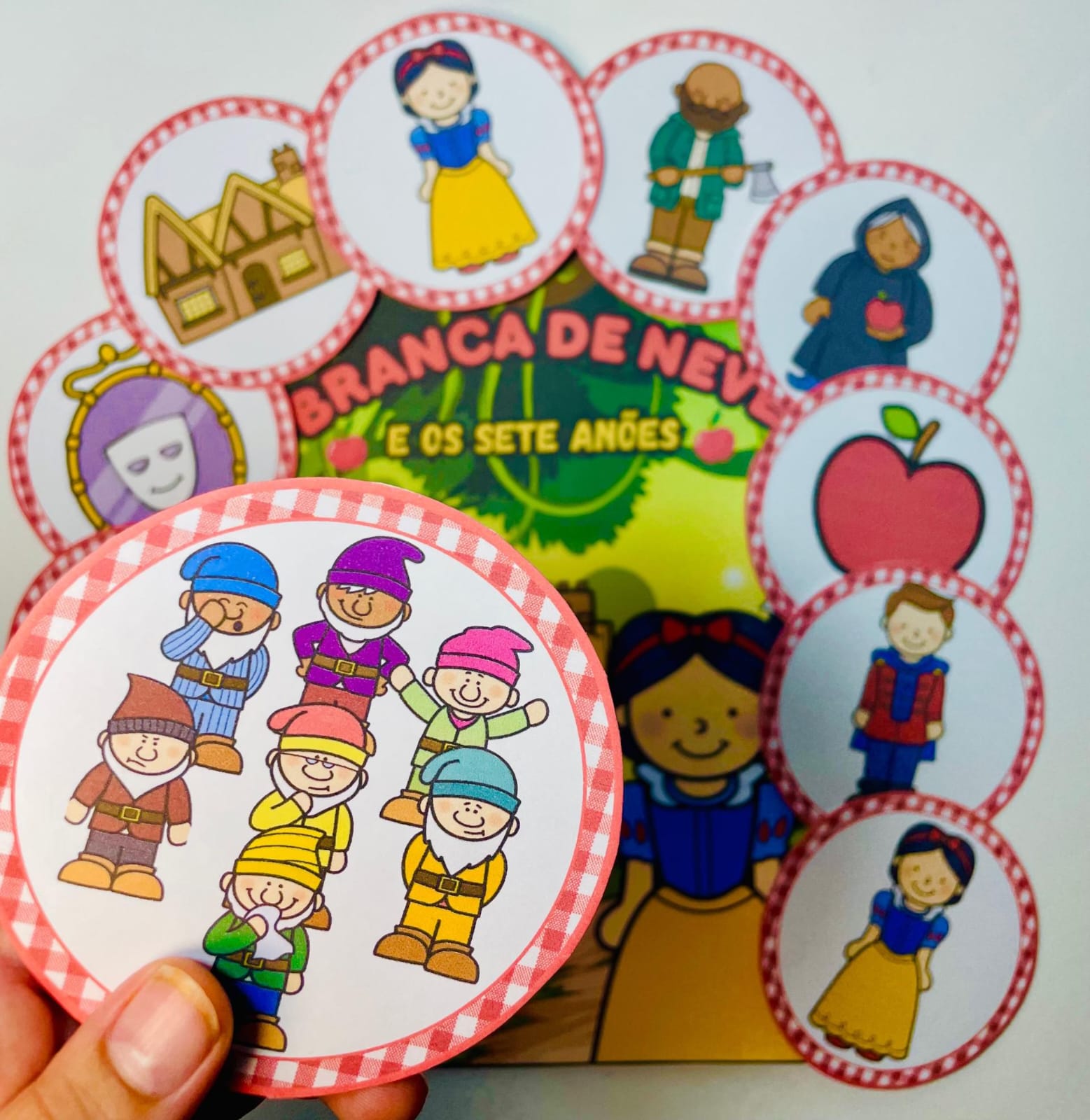 🍎✨ Luva de História: Branca de Neve ✨🍎 "Espelho, espelho meu... existe uma forma mais encantadora de contar histórias do que essa?" 🪞👑 Com essa Luva de História interativa, as crianças mergulham no conto da Branca de Neve e os Sete Anões de maneira lúdica e envolvente! 🌳🏰 🌟 O que esse recurso proporciona? ✅ Estimula a imaginação e a oralidade 🎭📖 ✅ Trabalha sequência lógica e recontação de histórias 🔄🗣 ✅ Incentiva a participação ativa das crianças 🌟👏 ✅ Ideal para educação infantil e alfabetização! Acompanha fichas ilustradas para ajudar os pequenos a organizarem os acontecimentos e viverem essa aventura mágica! Proibido compartilhamento devido a os direitos autorais