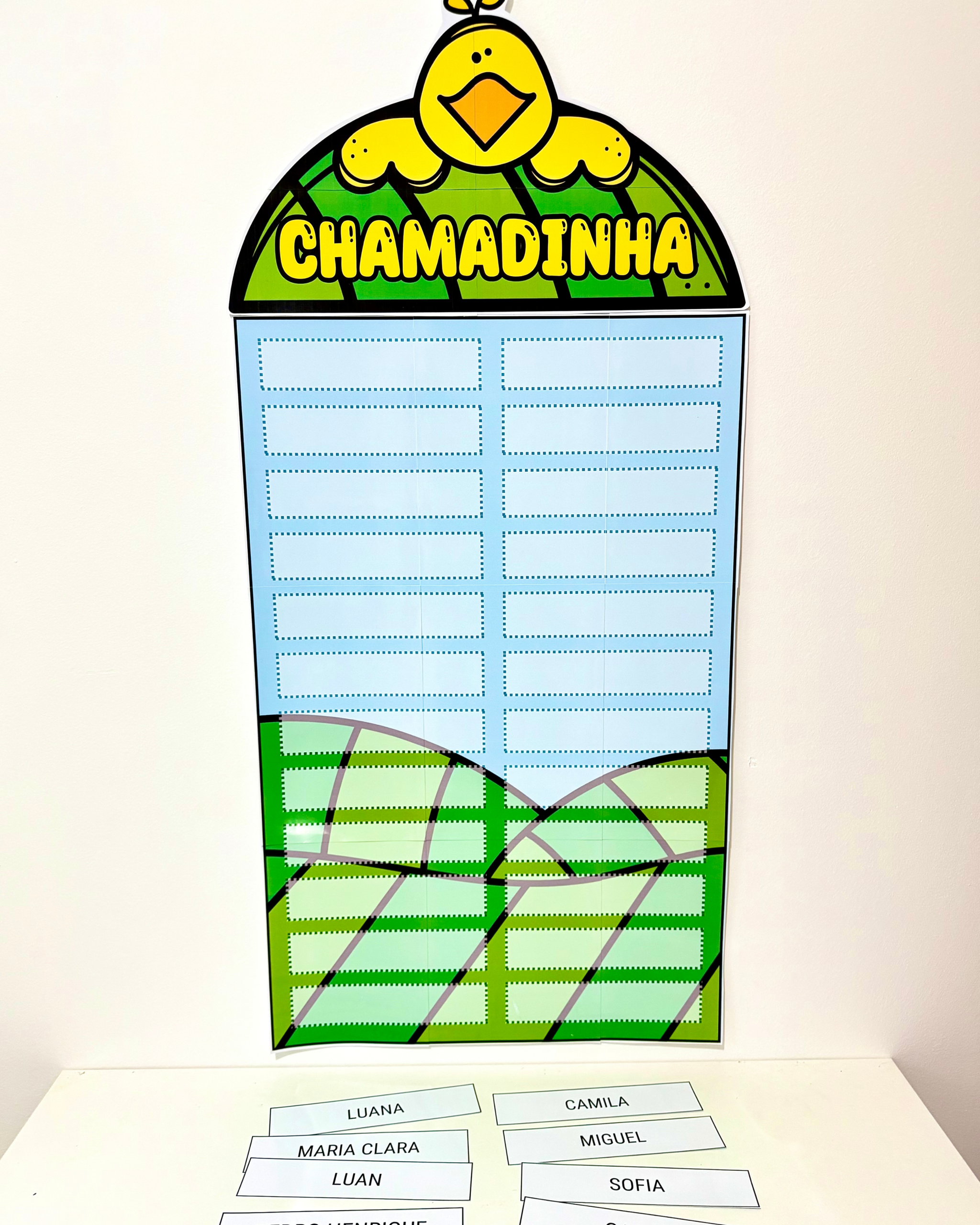 Chamadinha editável (1,4m x 49cm) Quantos Somos (54cm x 77cm) Aniversariantes (53cm x 69cm) Silabário simples (75cm x 52cm) Silabário complexo (78cm x 54cm) Elementos para decoração Placa de porta Editável (88cm x 35cm) Crachá de mesa Bandeirolas bem vindos Palavras mágicas (73cm x 51cm) Ajudantes do dia (76cm x 39cm) Que horas são (75cm x 53cm) Vogais (40cm x 37cm) Palavra do dia (75cm x 53cm) Alfabeto de parede Cores (1,5m x 47cm) Formas geométricas (1,7m x 55cm) Numerais de parede (2m x 40cm) Placas de pescoço Tempo hoje (74cm x 57cm) Tabela numérica (74cm x 57cm) Etiquetas materiais O arquivo vai em PDF pronto para impressão