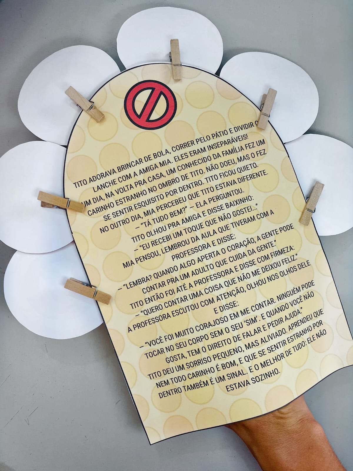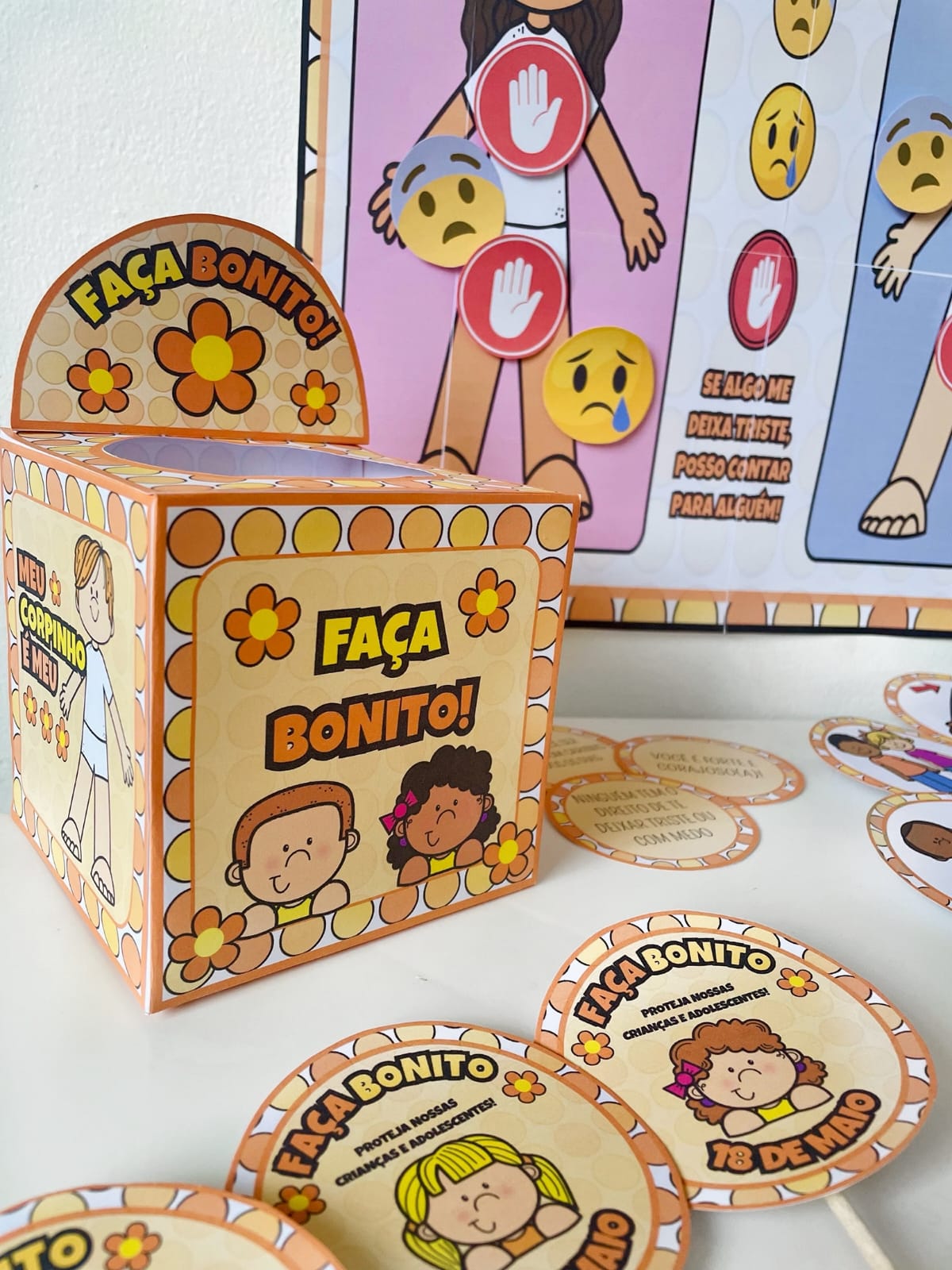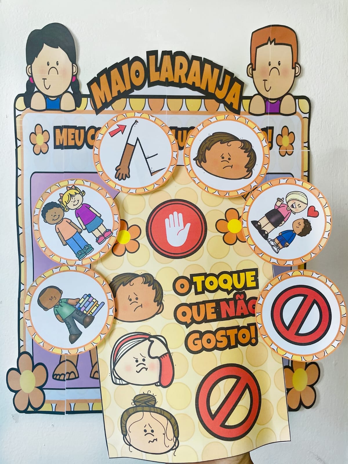 O Kit Maio Laranja - Meu Corpinho é Meu foi criado com muito carinho para ajudar as crianças a entenderem, de forma leve e lúdica, que o corpo delas é único e merece respeito! Você sabia que até os pequenos precisam aprender sobre proteção e cuidado com o próprio corpo? ✋❤️ ✨ Painel interativo com menino e menina ✨ Caixinha com fichas, emojis e frases de acolhimento ✨ Luva de histórias com a narrativa “O Toque que Eu Não Gosto” ✨ Lembrancinhas em palitinhos para levar carinho pra casa Perfeito para rodas de conversa, atividades do Maio Laranja ou projetos sobre direitos da criança! Vamos juntas transformar a educação em um espaço de escuta, cuidado e amor? 🌼 Proibido compartilhamento devido aos direitos autorais