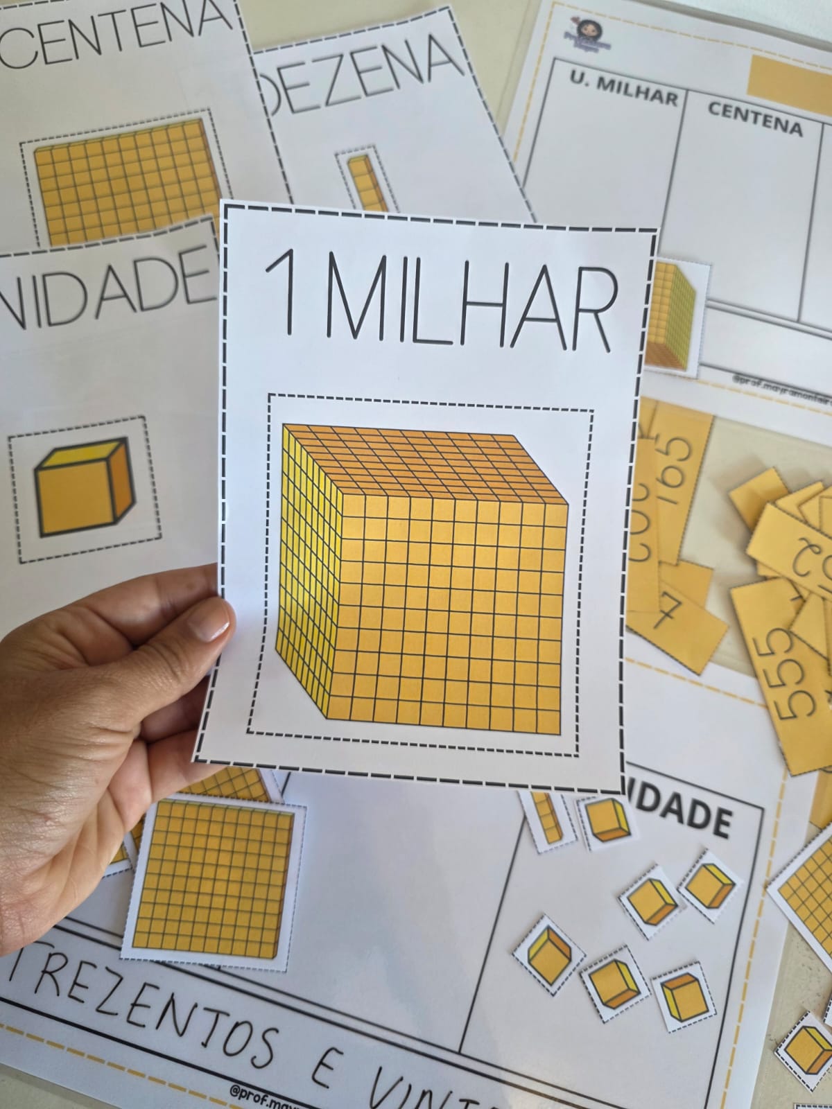 ✅️ Cards com números ✅️ Cards em branco para você acrescentar os números que quiser. ✅️ Uma ficha para trabalhar até a centena, e outra com a milhar ( PLASTIQUE E USE MUITO.) ✅️ Imprima quantas folhas quiser e tenha um super material dourado para trabalhar com os alunos.