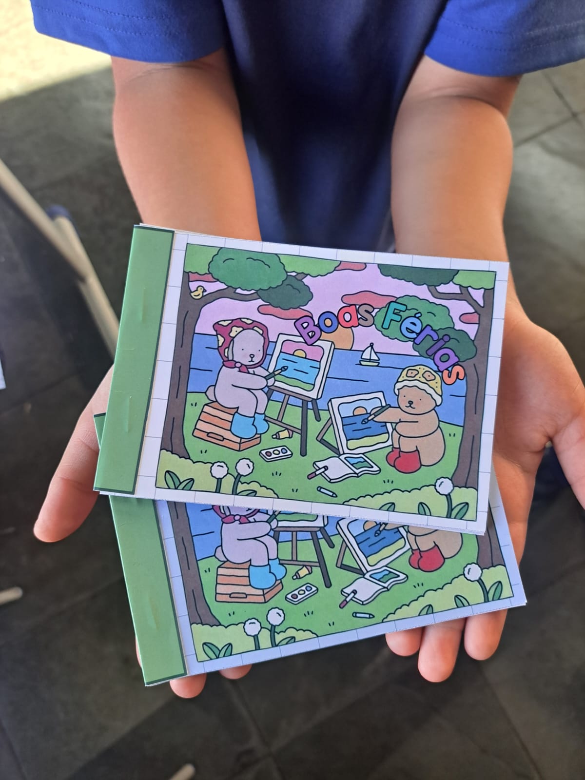 Livrinho de colorir para presente 🎁 A despedida para as férias será lembrada com muito carinho. São 8 desenhos para colorir com os personagens do Bobbie Goods.