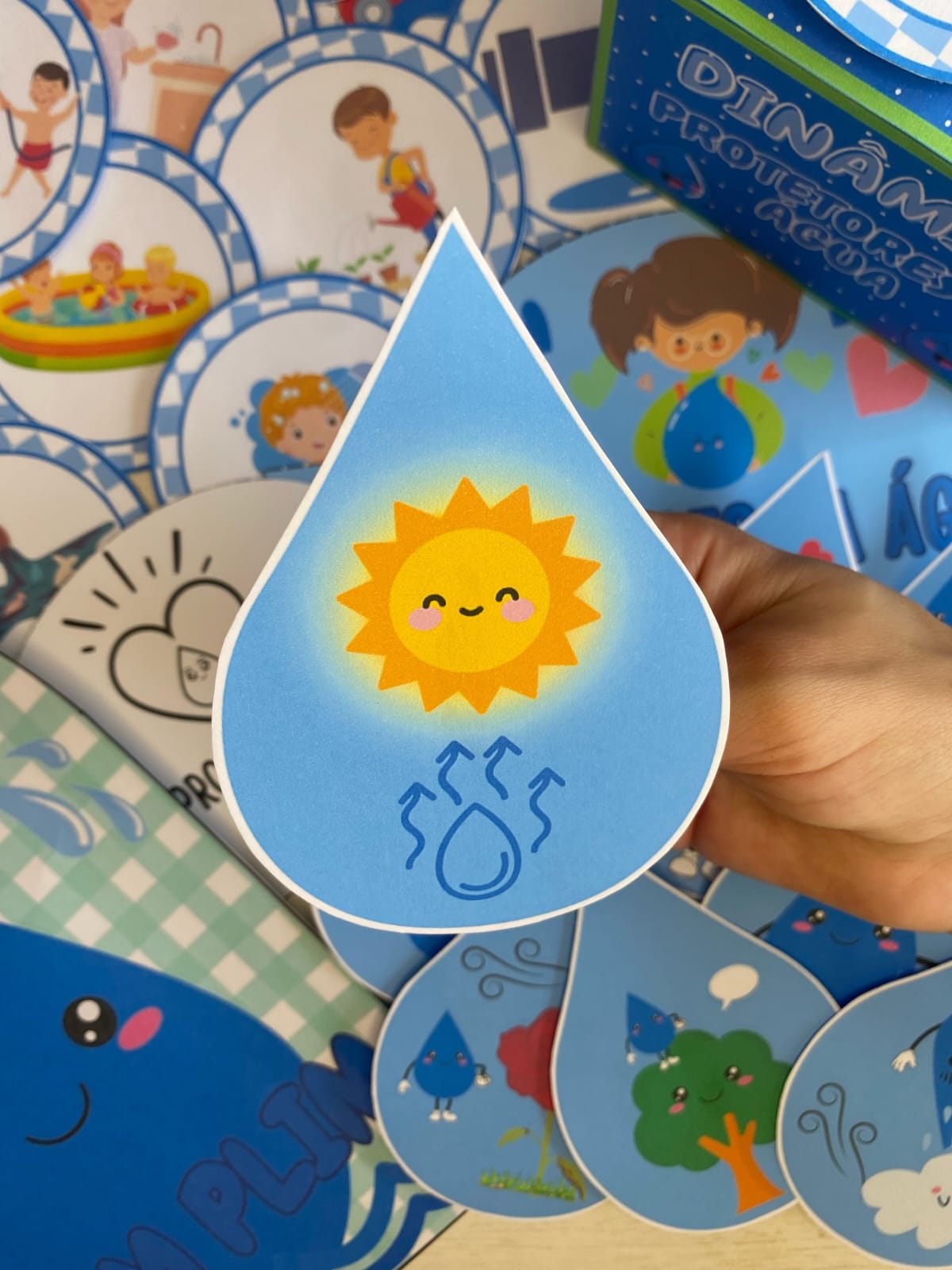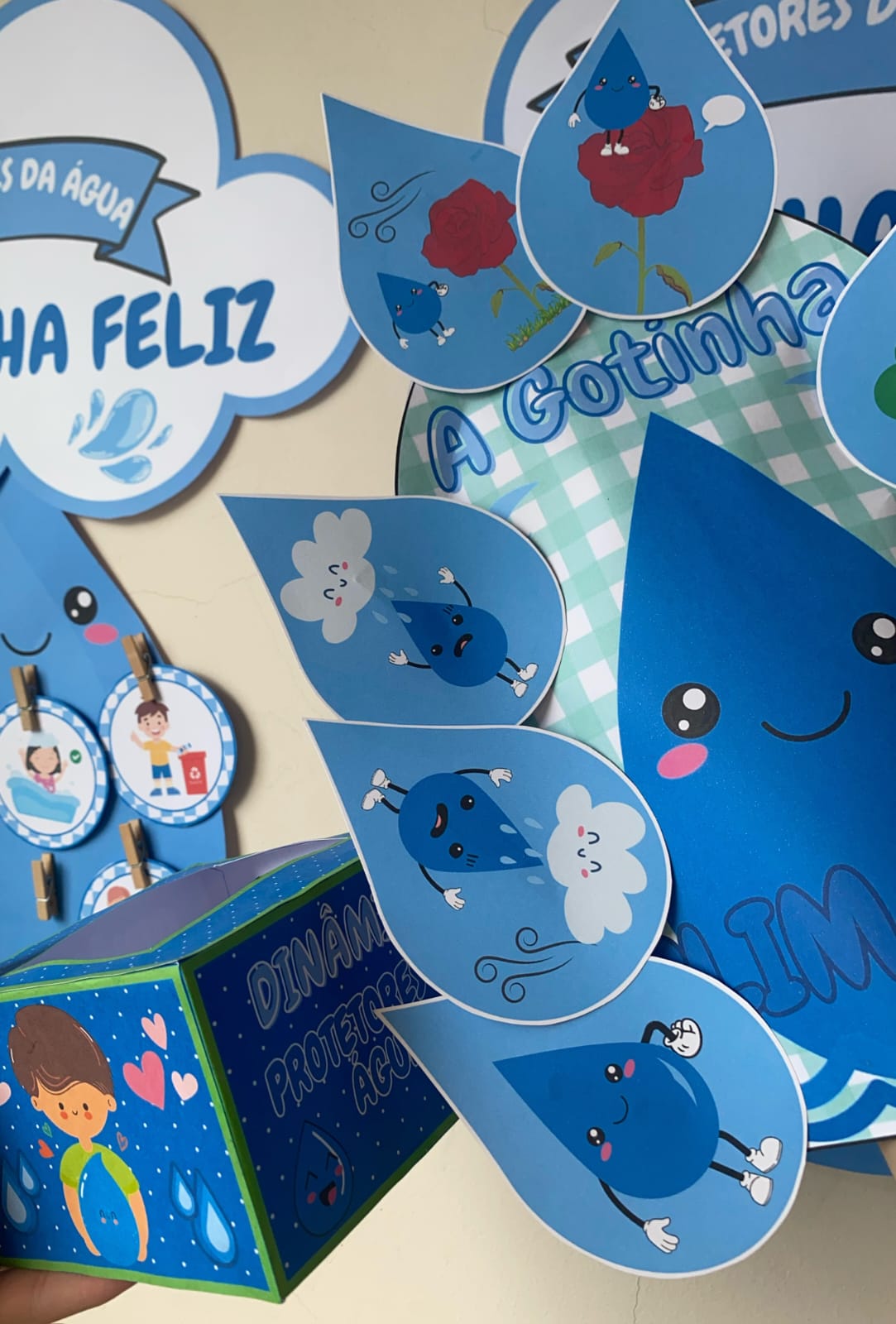 ✨🌎💦 Kit Semana da Água ✨🌎💦 Esse Lindo Kit possui 4 recursos diferentes para você trabalhar a semana do meio ambiente,comemorado no dia 5 de junho! 😍 O kit acompanha: 💦Painel interativo Gotinha Triste e Gotinha feliz 💦Viseira Protetores da Água: 3 modelinhos de viseira, sendo um deles para colorir 💦Luva de História: A Gotinha Plim Plim 💦Dinâmica Protetores de água: caixinha com 12 fichas de atitudes rotineiras para se realizar com a água, podendo ser atitudes corretas e atitudes erradas, onde o próprio aluno poderá identificar os base em suas vivências.Proibido compartilhamento